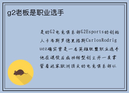 是的,G2电竞俱乐部(G2 Esports)的创始人卡洛斯·罗德里格斯(Carlos Rodriguez)确实曾是一名《英雄联盟》职业选手。他在退役后成功转型,创立并一度掌管着这家欧洲顶尖的电竞俱乐部...